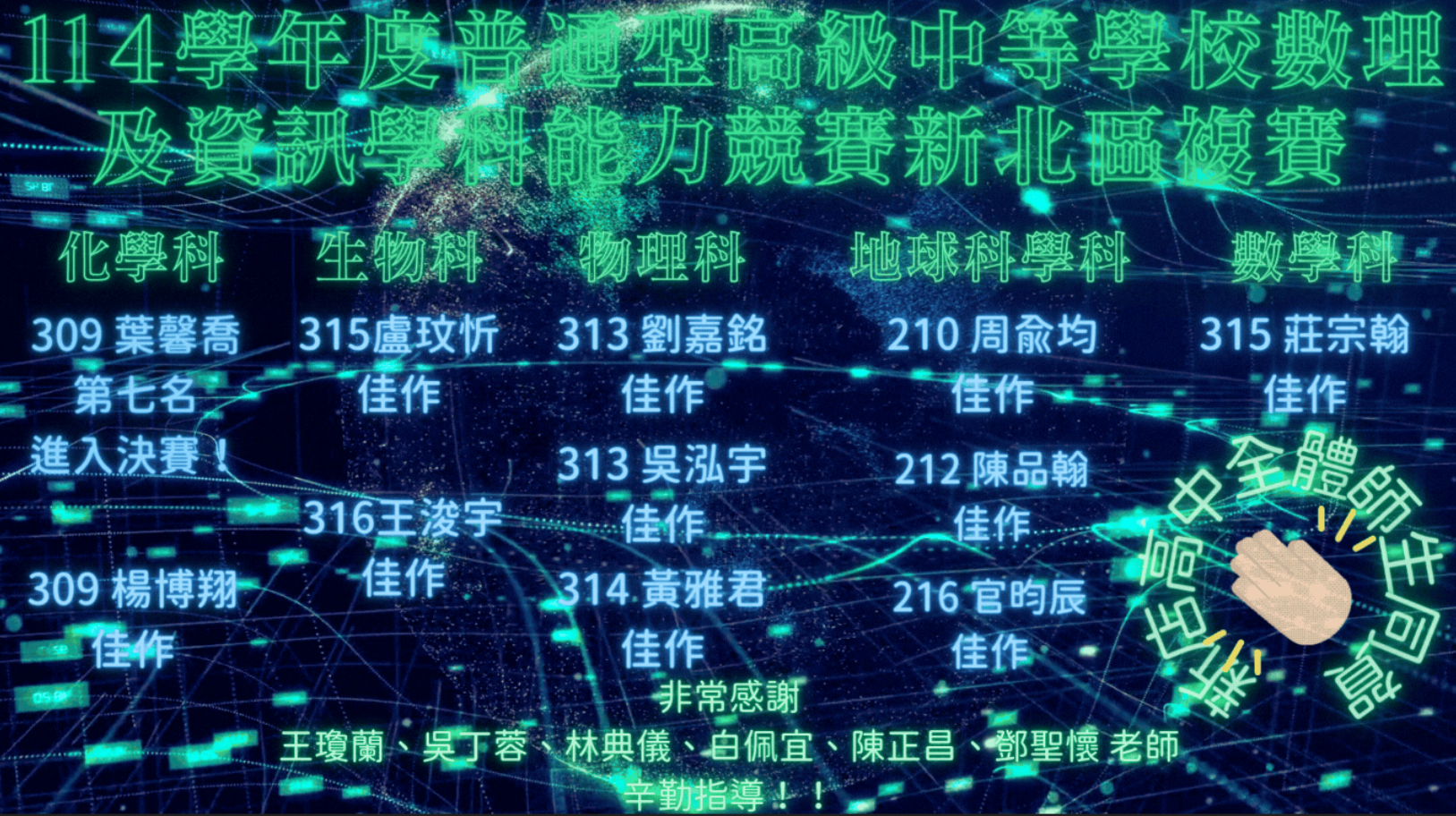 賀 本校學生參加114學年度數理及資訊學科能力競賽 榮獲佳績數個!!
